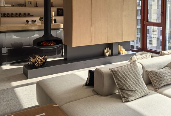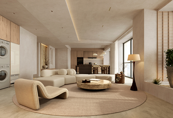 本案為一座580平米的意式輕奢風格別墅,將現代簡約與奢華質感完美融合。入戶區域便定調了整個空間的非凡氣度:對稱式的高大木質收納柜沉穩大氣,其間形成的通透走廊自然地引導視線向內